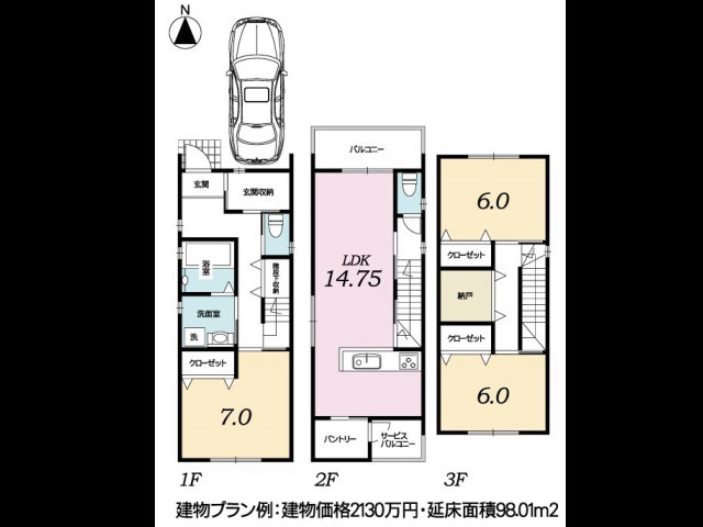 | 土地面積 | 74.67m2 (22.58坪) | 建ぺい率 | 60% |
