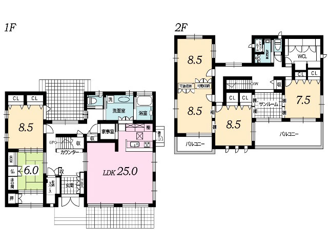 | 設備 | 都市ガス システムキッチン TVモニタ付インターホン 食器洗い 2Fトイレ カウンターキッチン クローゼット | ||